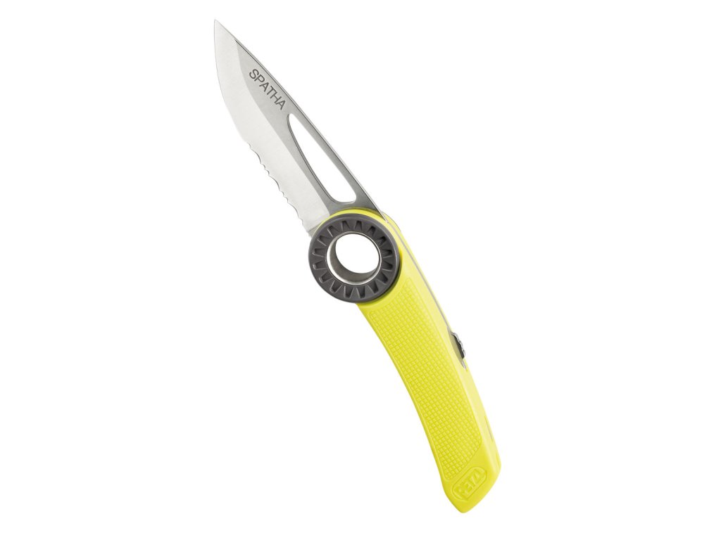 Nůž SPATHA je navržen speciálně pro horolezce. Profil čepele umožňuje snadné řezání lan a smyček. Má otvor pro karabinu pro připevnění nože k úvazku. Plastové kolečko se strukturou slouží k otevírání a zavírání nože v rukavicích, zvládnete ho oteřít i jednou rukou. Má pojistku proti náhodnému zavření.